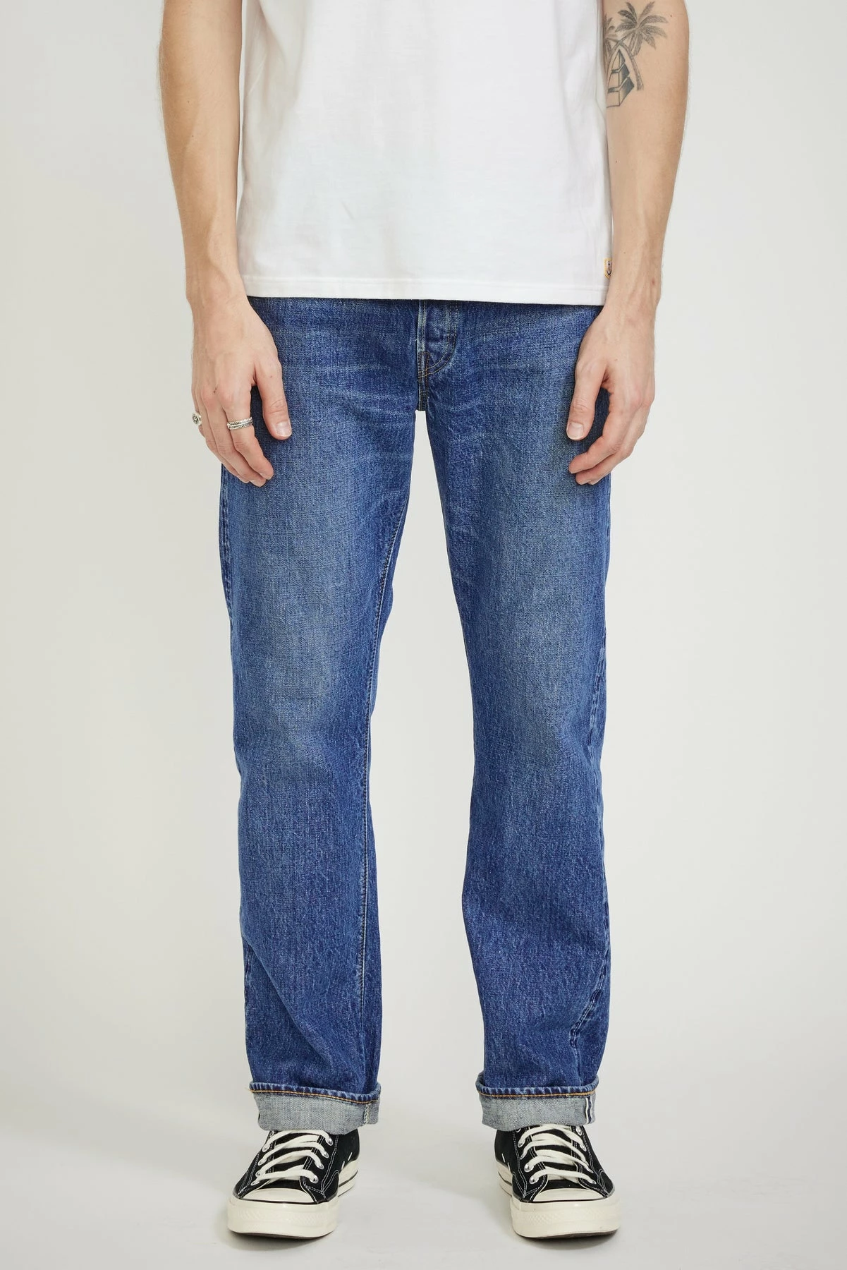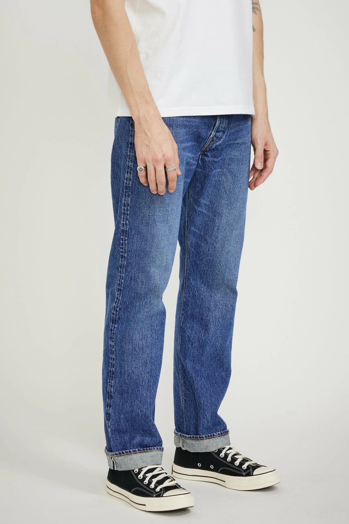 The 105 is orSlow’s looser 90’s style fit in 13 oz premium selvedge Japanese denim that’s washed back to give a 2 year worn in appearance. The selvedge denim returns a more even and less textured finish than the non selvedge option
