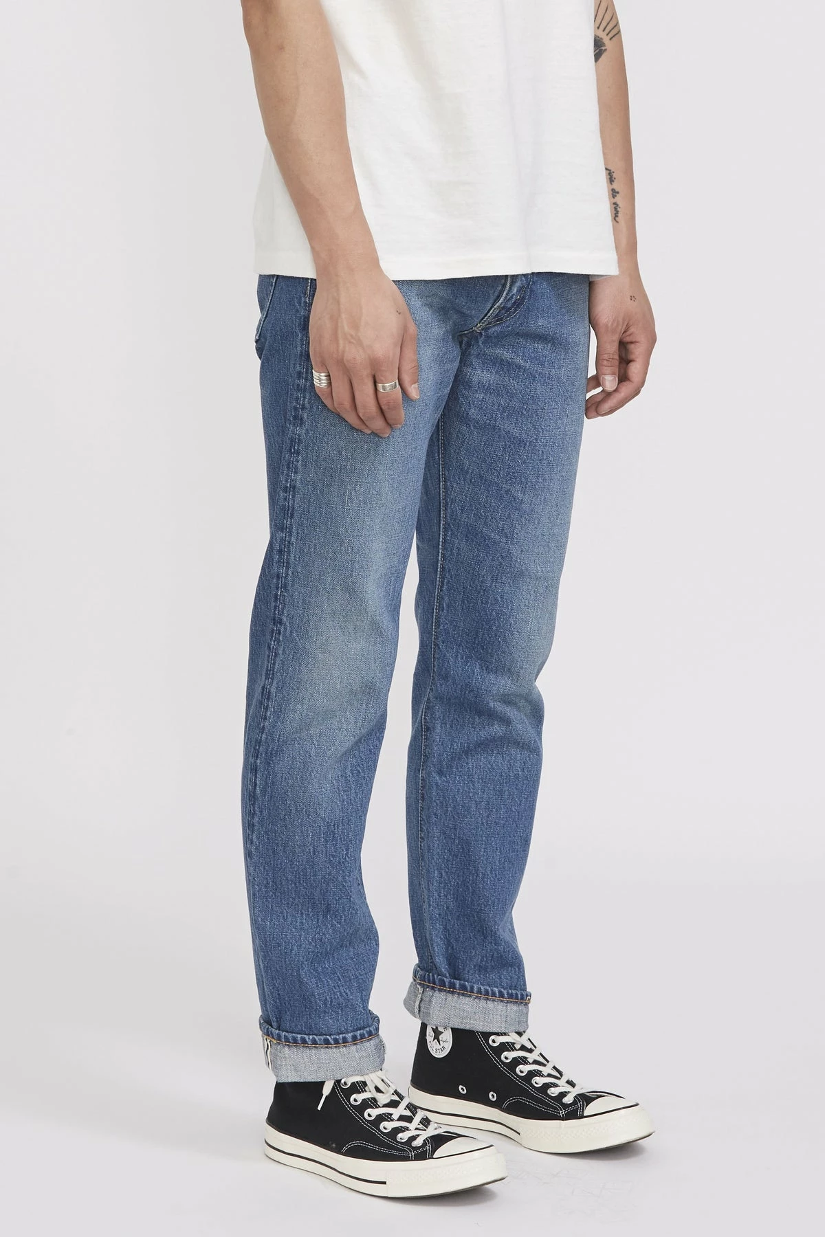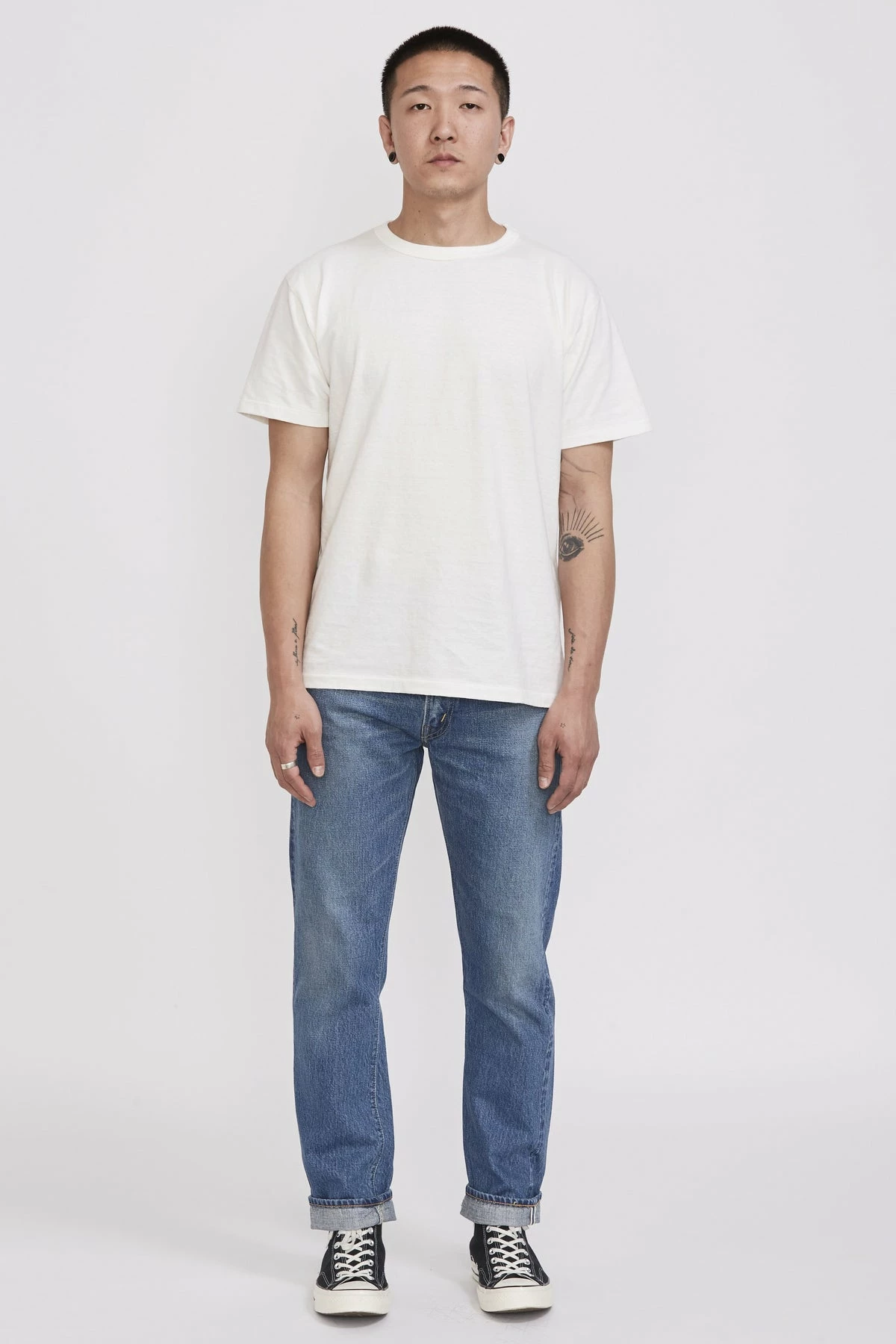 The 107 ‘Ivy league’ slim fit was Inspired by a pair of vintage Levi 505′ from orSlow designer Ichiro Nakatsu’ extensive personal archive. From there orSlow was born and the 107 Ivy League has continued to be an integral part ever since. Cut from 13.5 oz Japanese selvedge denim with a slightly neppy face available here in ‘2 year Wash’ with fading perfectly mimicking a pair of nicely worn in rigid selvedge jeans. A true regular fitting slim fit with zip fly closure, mid rise and slight taper throughout the leg.