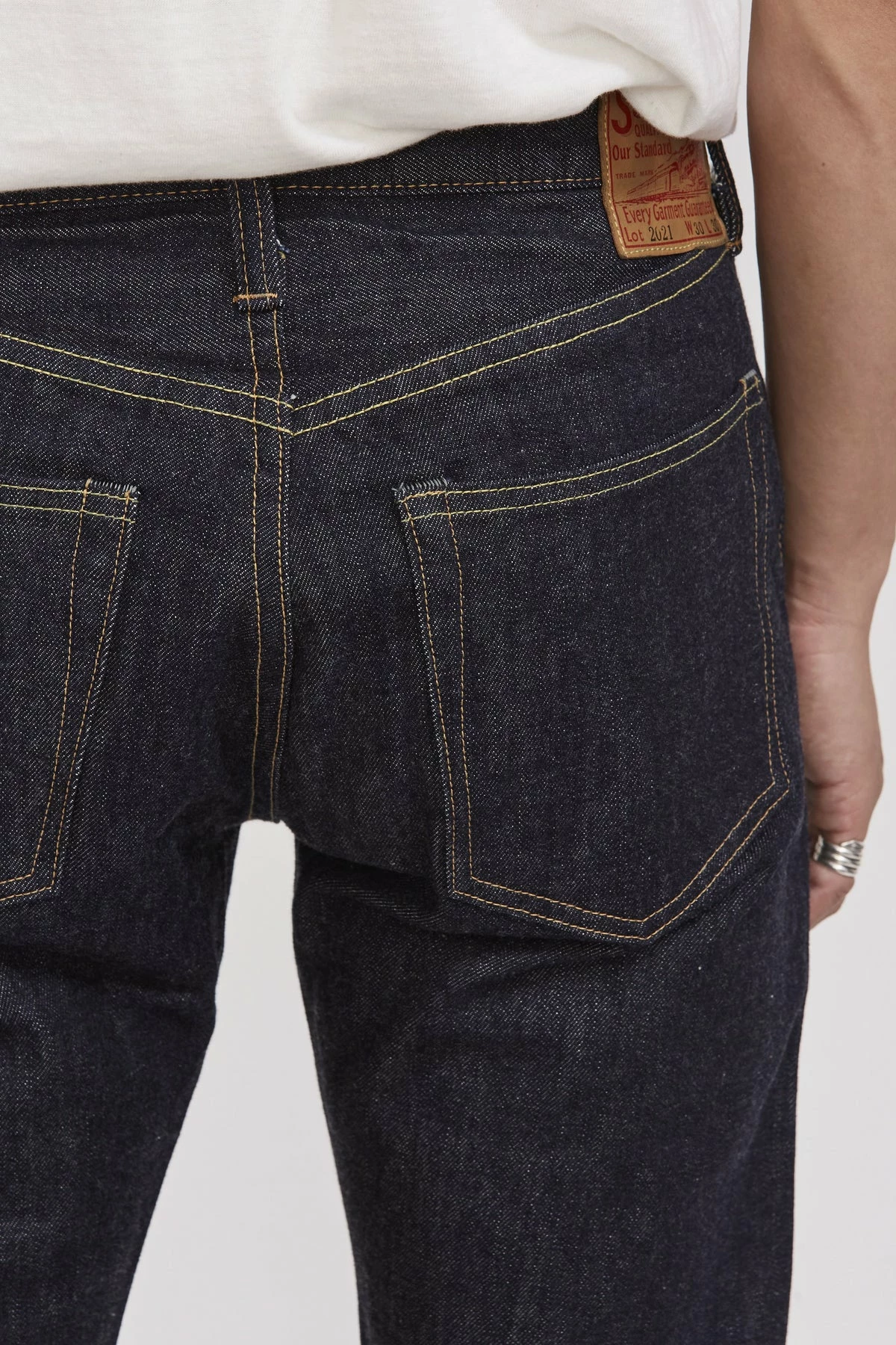 A slimmed down version of Sugar Cane‘s 1947 model, a homage to what is widely considered Levis best fitting 501. This slim version is very much a modern take on the original style with a slimmer fit through the seat and thigh and slight taper to the leg opening. Staying true to the original styling and fabrication of the Levis iconic model Sugarcane have developed a 14-ounce, double ring-spun selvedge denim produced on the original narrow shuttle looms as well as replicating the original indigo hue and red line selvedge. Constructed in unsanforized denim they are then once washed to eliminate shrinkage and excess indigo dye.