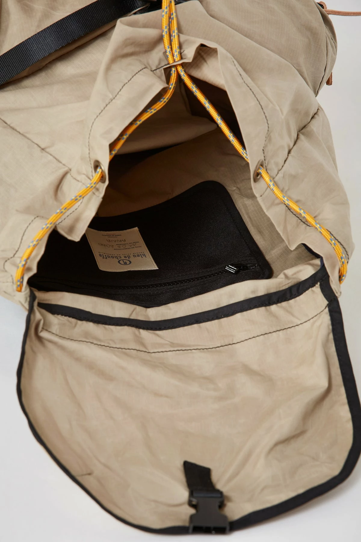 The Bayou Backpack is part of the Bleu de Chauffe Teklite range. Multi-use, practical, and lightweight it’s made from British Millerain Ranger, a lightweight waxed 100% cotton fabrication renowned for its wind resistance and water repellancy. The rope closure is a nod to the climbing bags its design is inspired by, and the breathable ‘Air Mesh’ back with ergonomic double foam lining provides optimal carrying comfort.