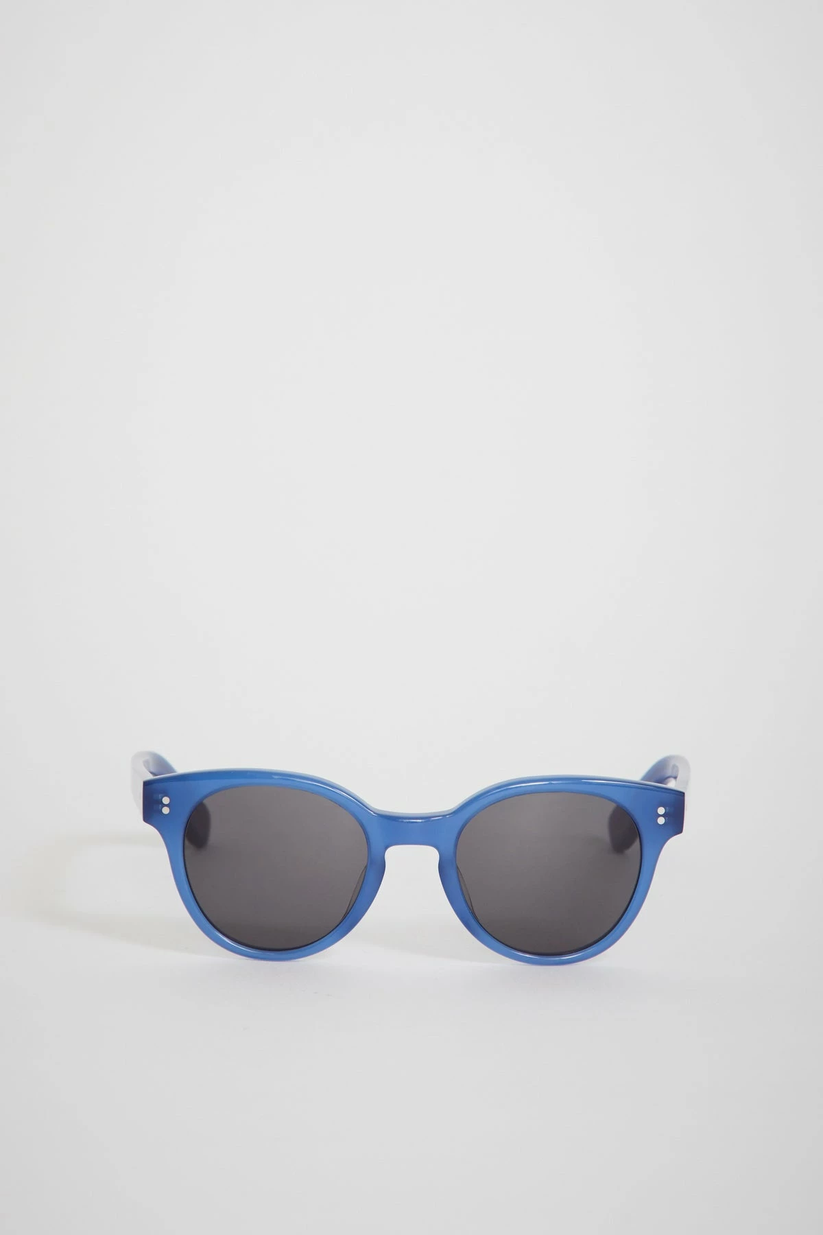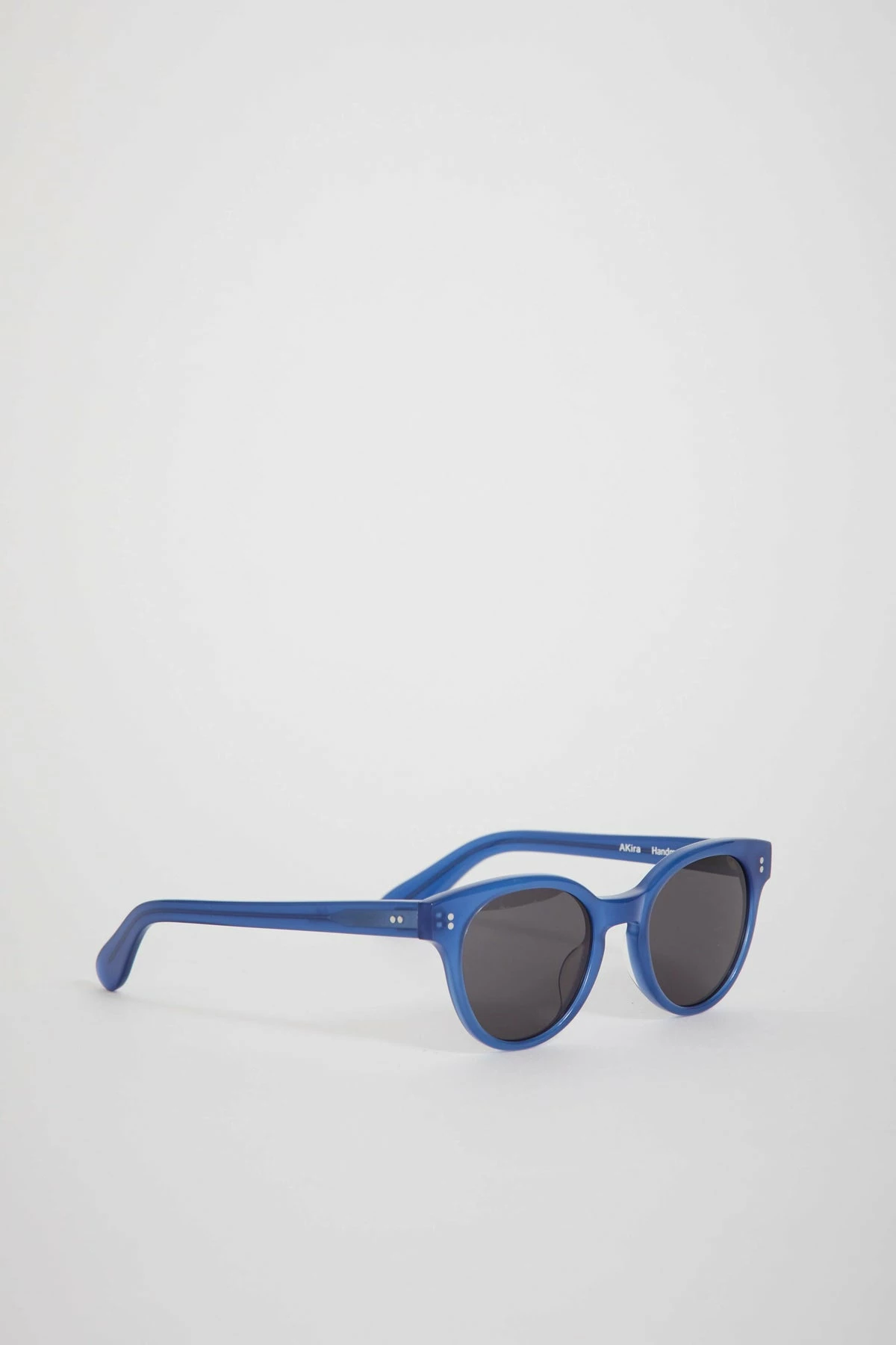 Akira Moody Blues from Swedish brand Sun Buddies are a semi transparent milky vintage inspired frame in a blue colour way, handmade of Italian acetate and fitted with Black Carl Zeiss lenses.