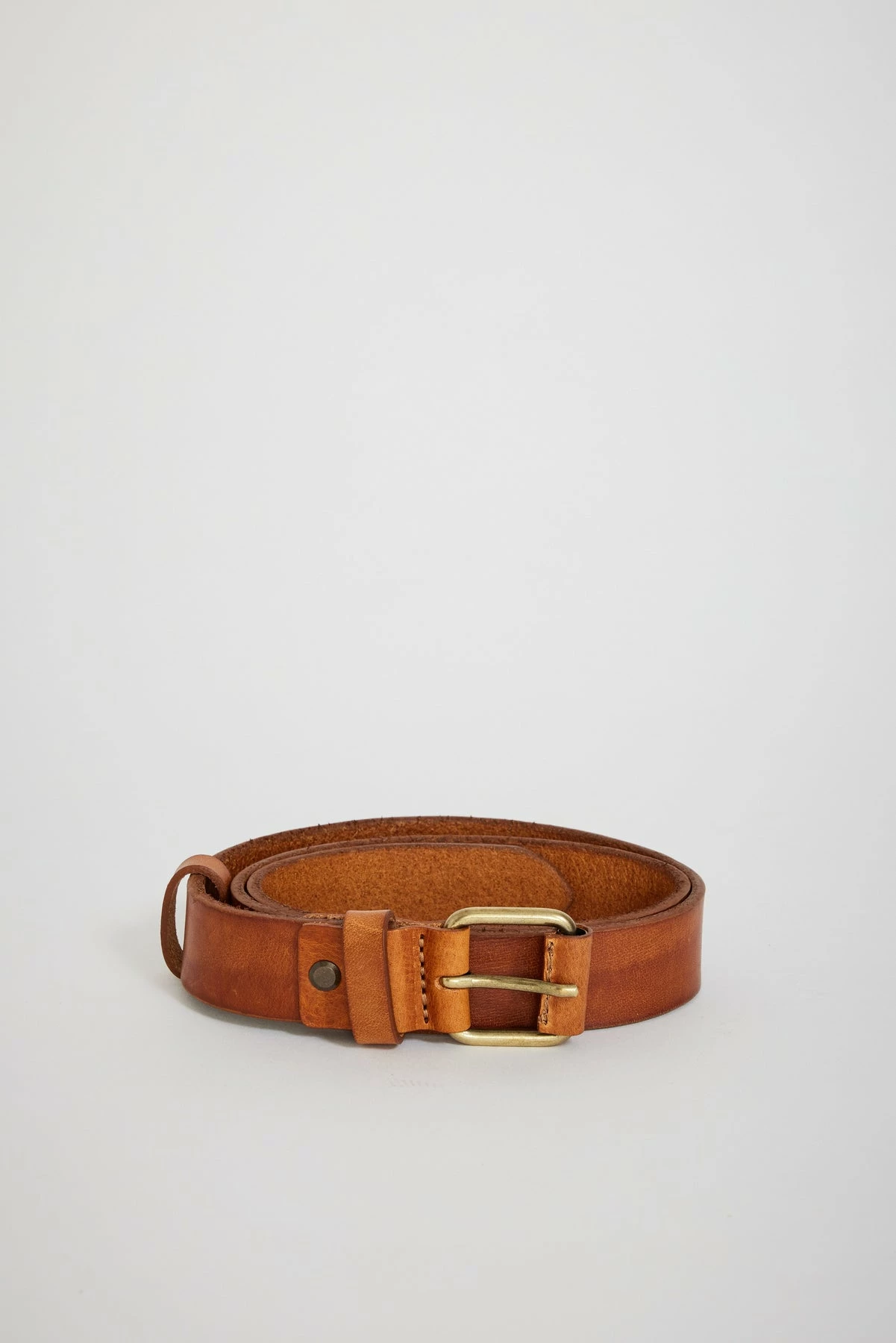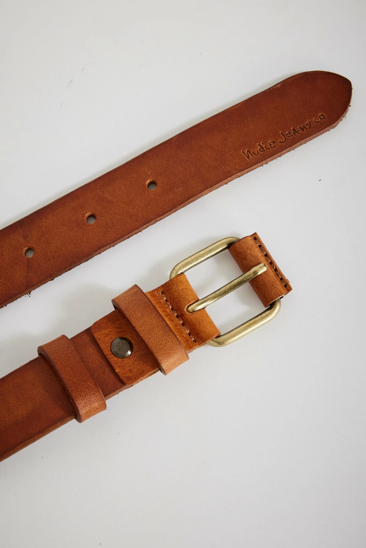 Belt made from the finest full grain leather. Two loops keep the belt end neatly in place and where the pin meets the buckle Nudie have wrapped the buckle in leather, simply because they think it looks good. Antique silver buckle and Nudie Jeans debossed logo.