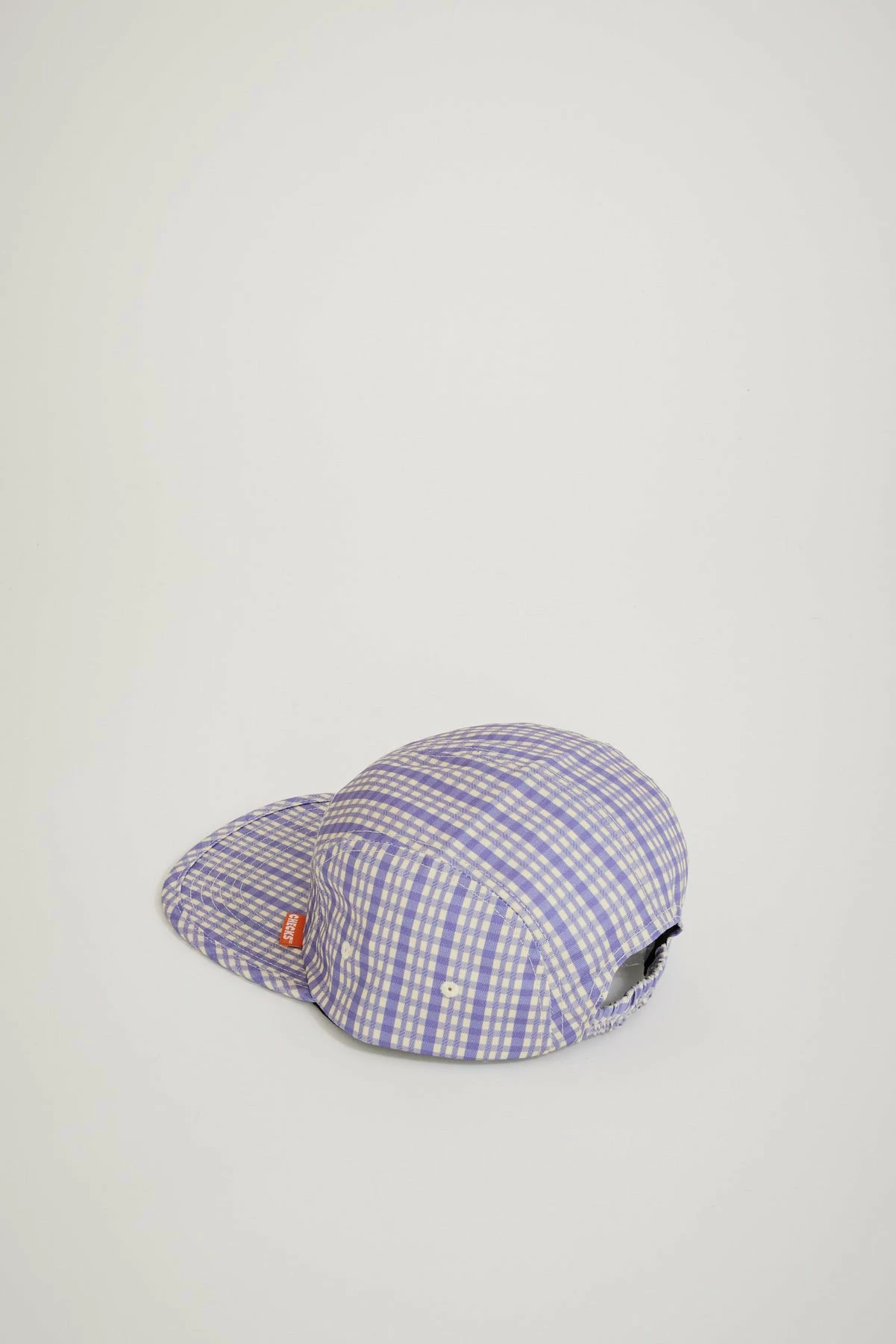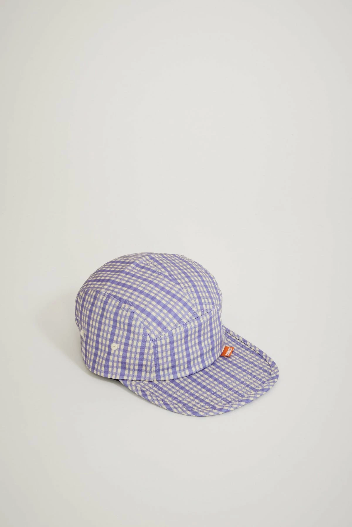 Classic five panel goodness from Checks in a pale blue gingham print with their signature orange pip label on the brim.