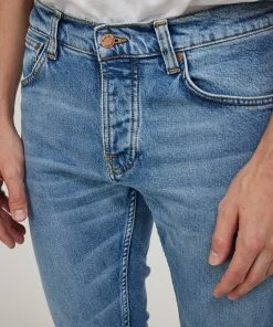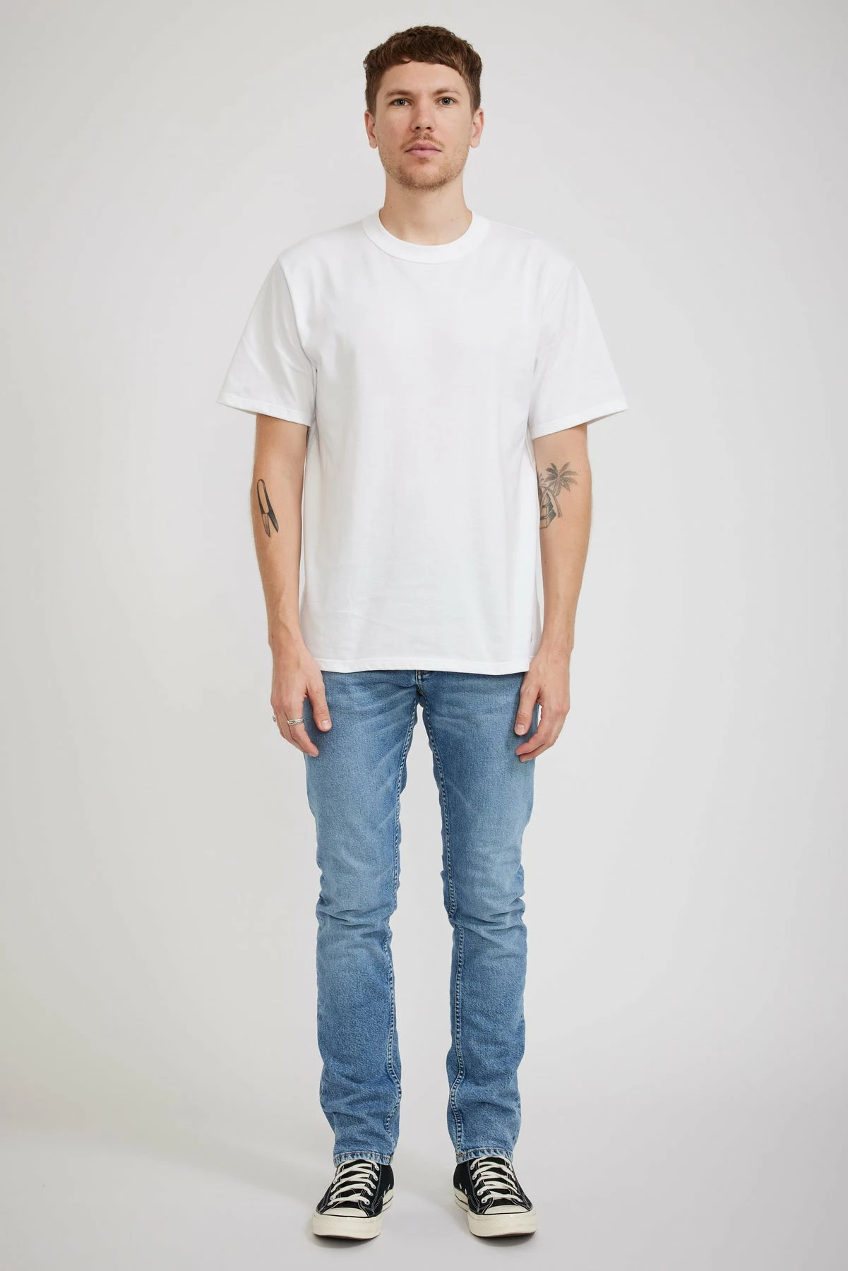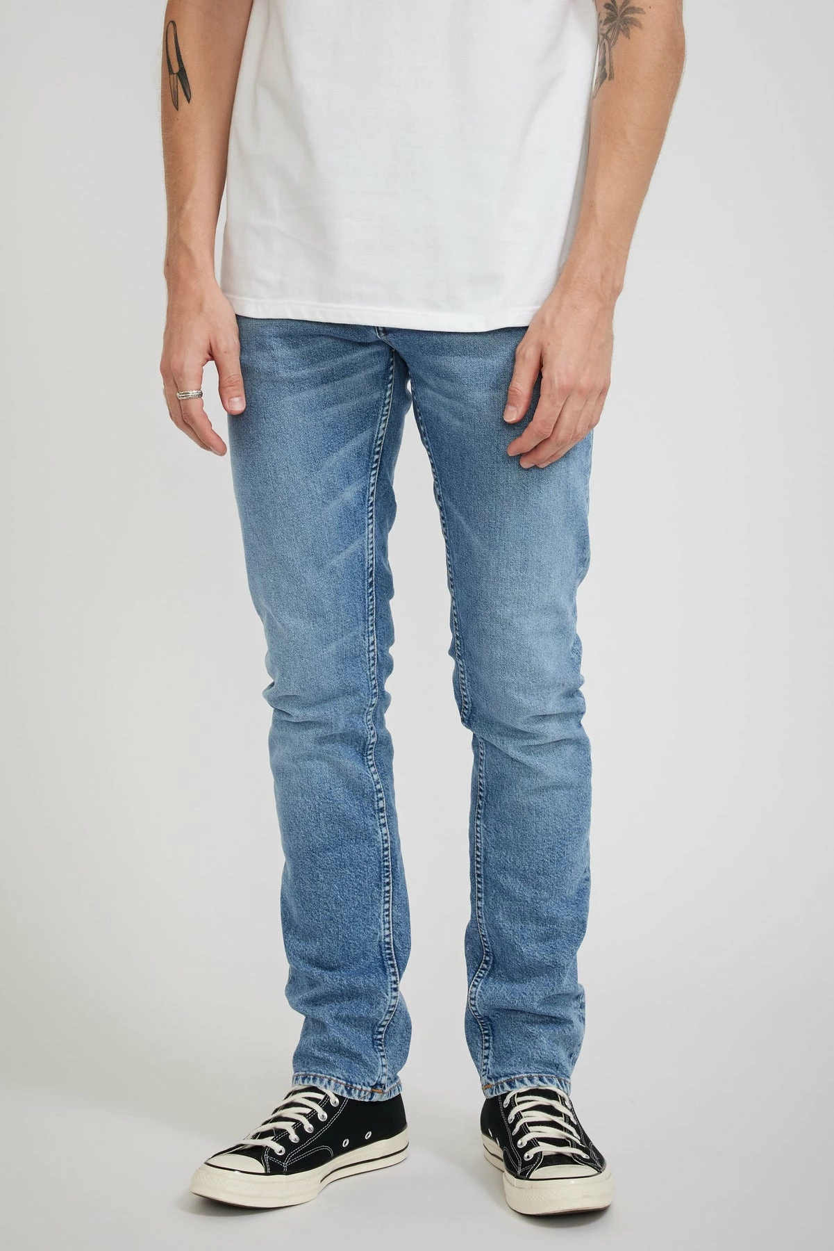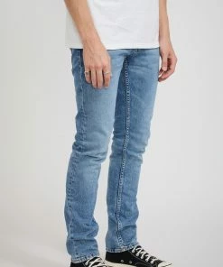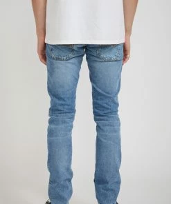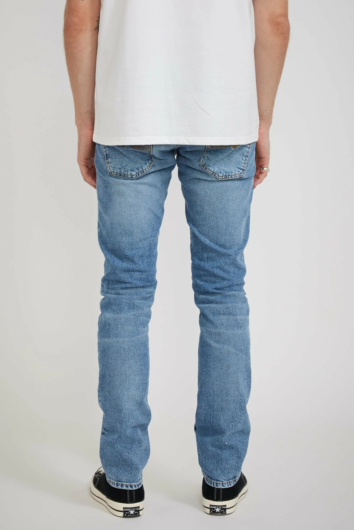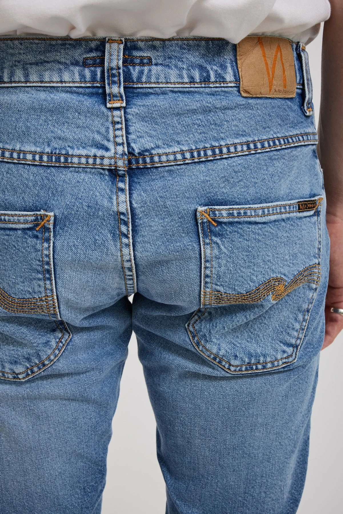 One of Nudie’s all time favourites returns. Grim Tim are a slim fit jean with a straight leg made in organic comfort stretch denim. The Pale Blue wash is designed to be the perfect summer jean, light and bright, with a lot of worn in character through the denim.