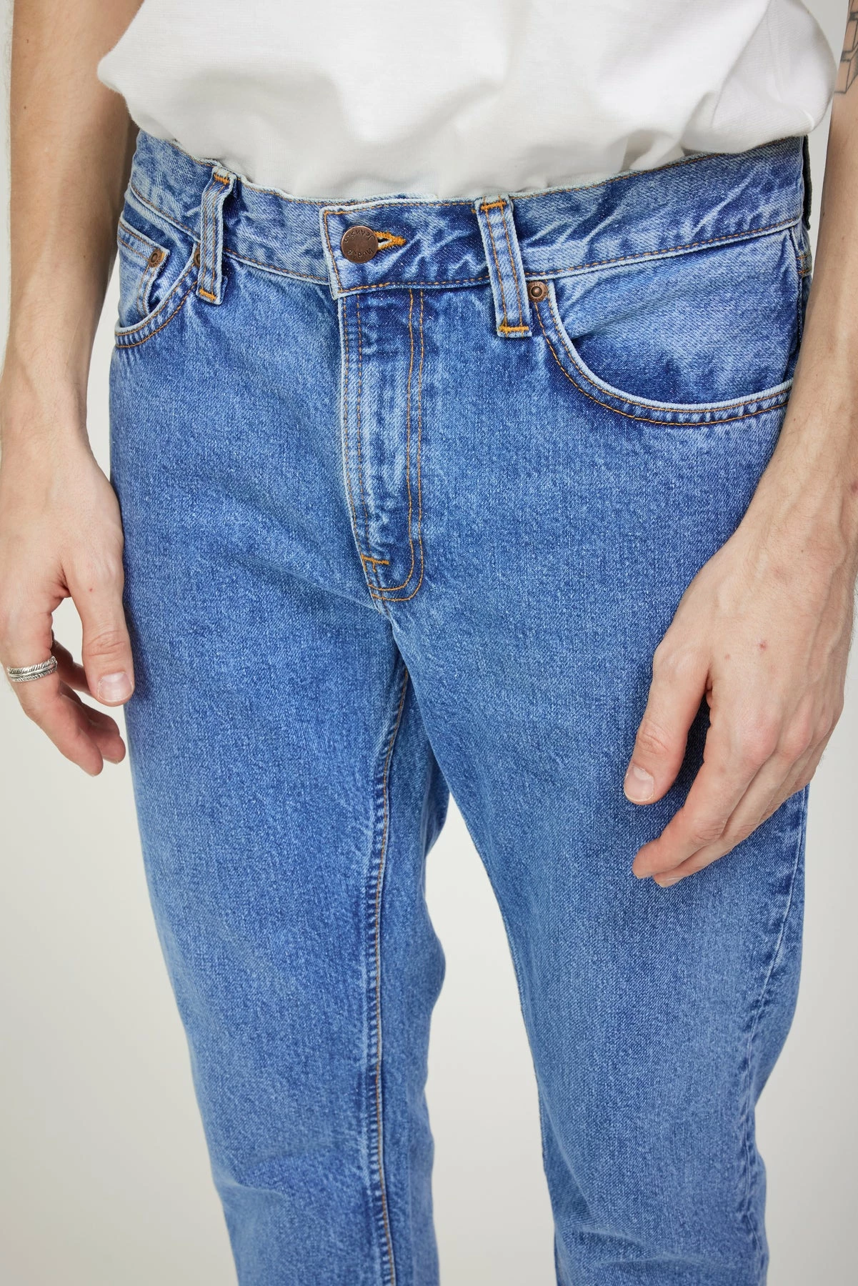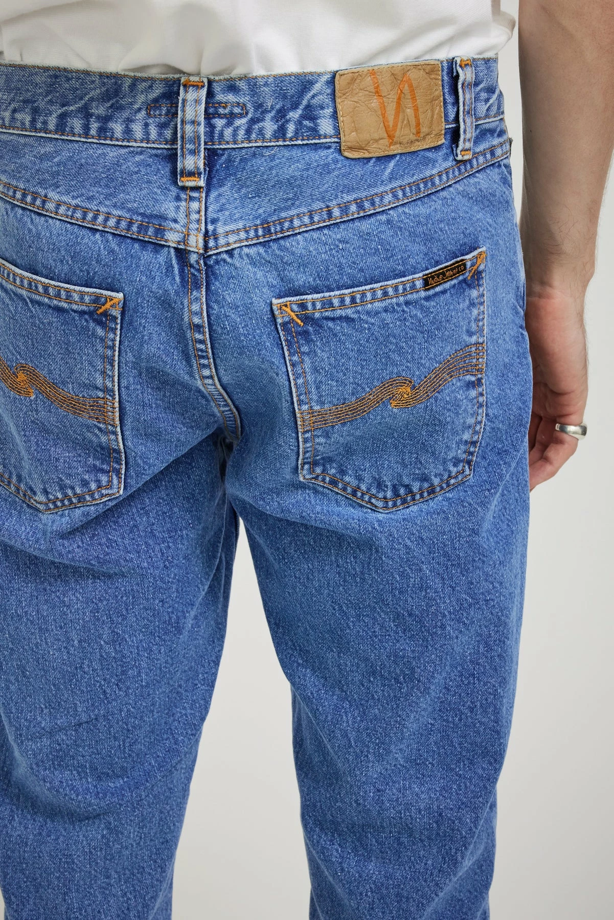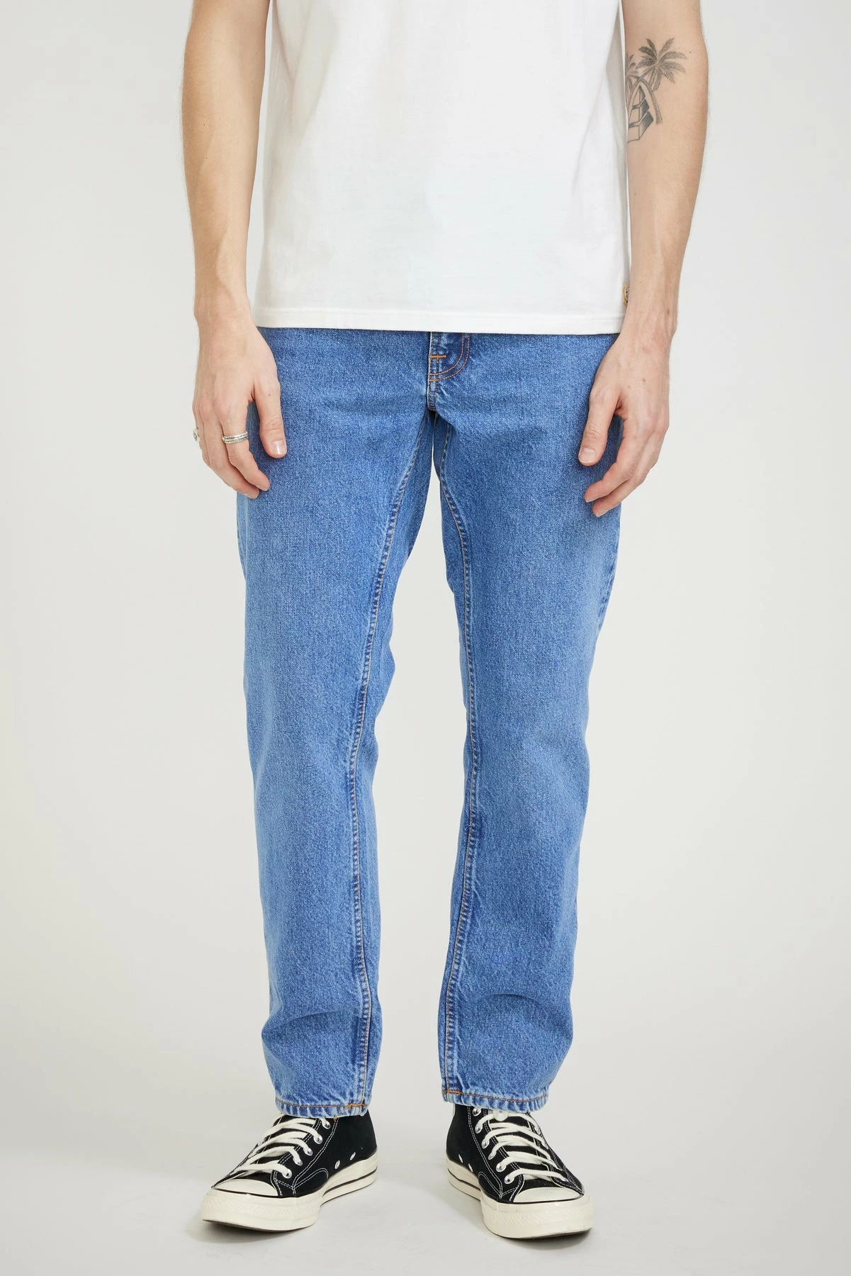 The Gritty Jackson from Nudie Jeans is a regular fit jean with a straight leg, made in organic rigid denim. These jeans are made from denim consisting of 80% organic cotton and 20% recycled cotton. The stonewash creates soft contrasts at the seams and reveals the diagonal twill lines of the textured denim.