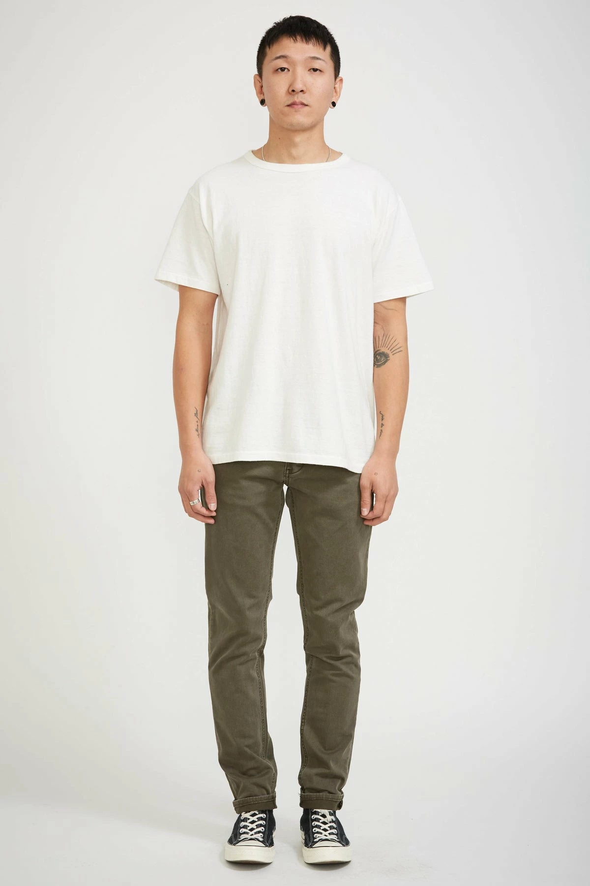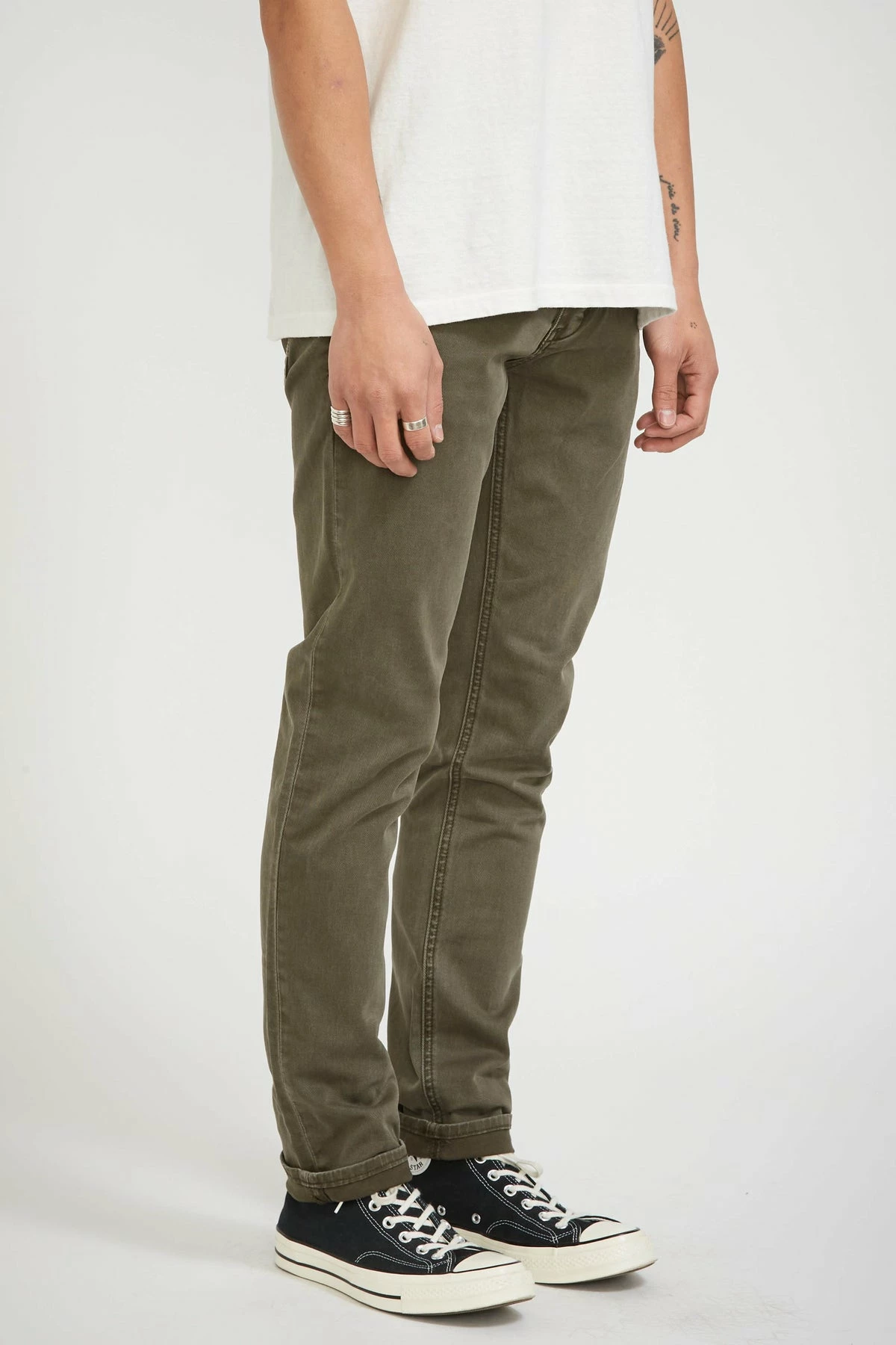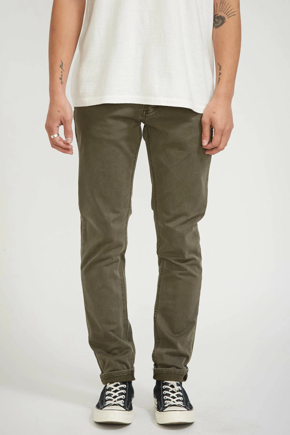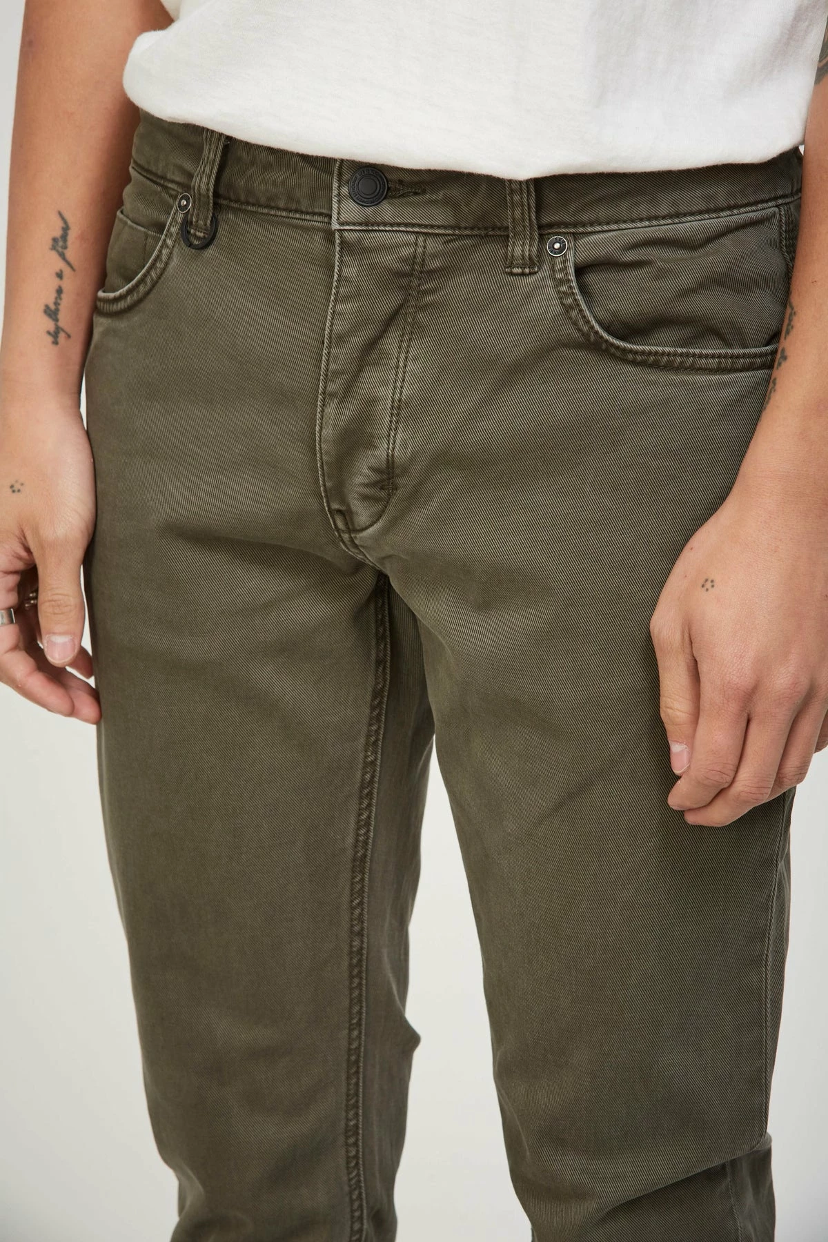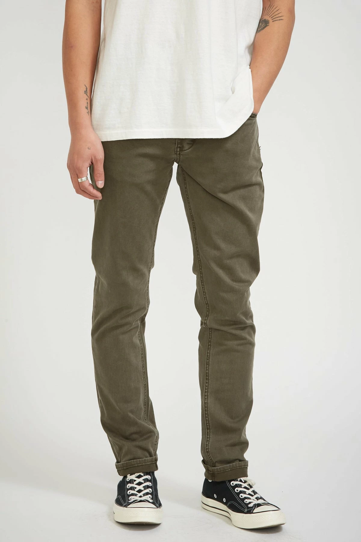 Lou Slim Twill in Military from Neuw Denim. Their classic 5 pocket slim fit jean is named after iconic American musician, singer and songwriter, Lou Reed, with inspiration drawn from the pair he wore while recording the Velvet Underground’s eponymous LP in 1966. Just about the perfect fitting regular slim leg jean in store. Featured here in a washed midweight stretch European Twill; part pant, part jean.