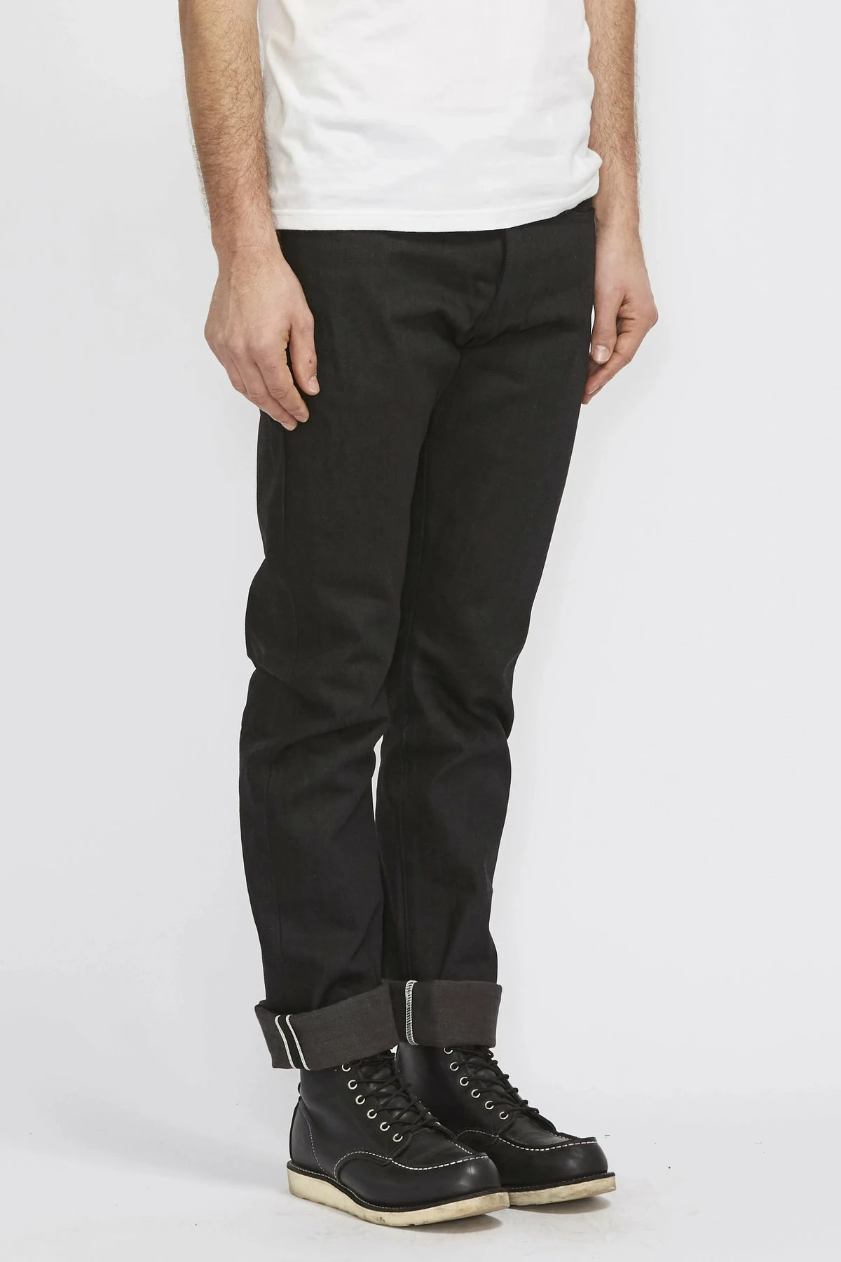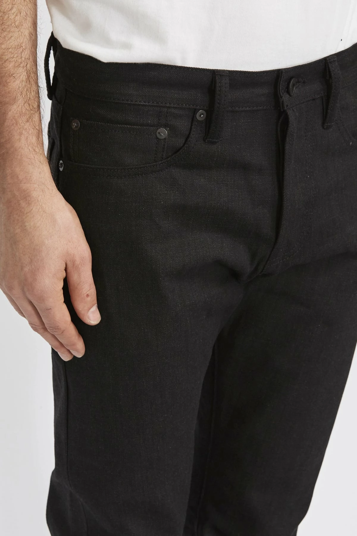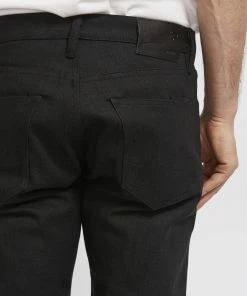 The Rogue Territory Stanton Jean is a slim straight, mid rise fit. It features proprietary 15.25oz sanforized solid black Japanese selvedge denim which is custom made in Japan. Handmade in downtown Los Angeles, California.