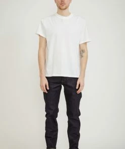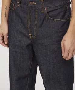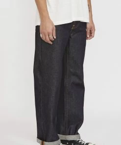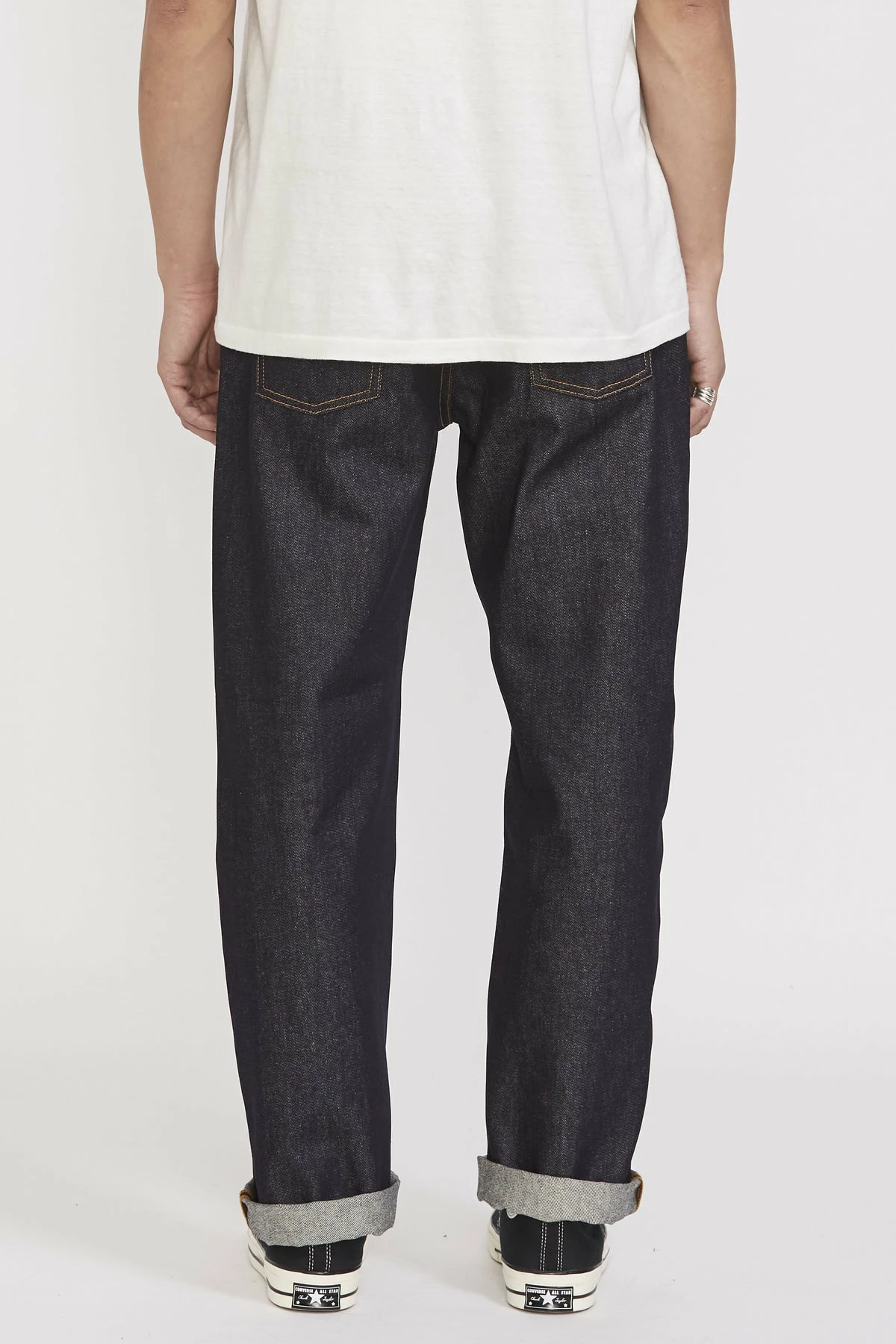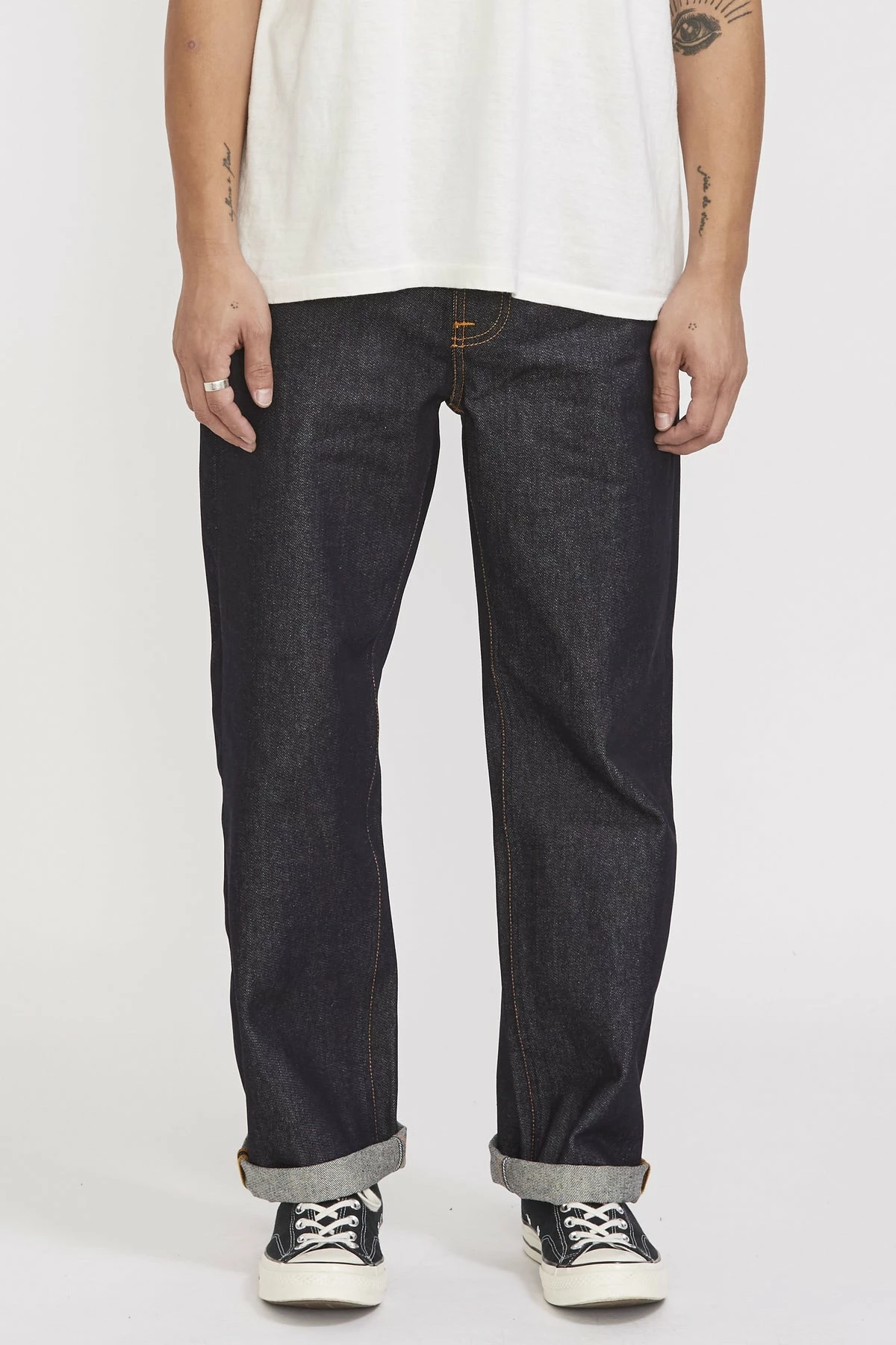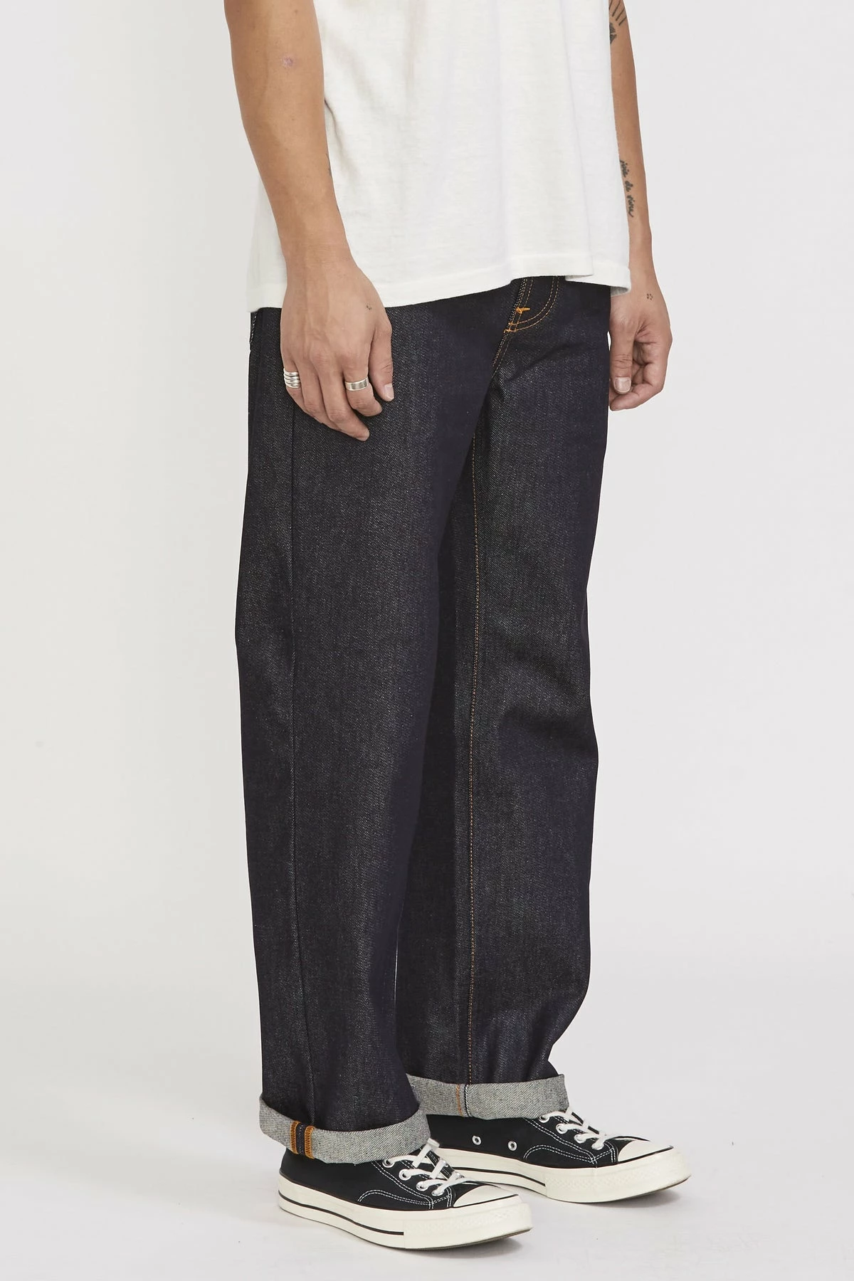 Introducing Tuff Tony. A relaxed fit jeans with a straight leg made in organic denim. For Nudie’s first dry Tuff Tony’s they’ve used a vintage-like, dark blue 13.2 oz Italian redcast denim with a bunch of character. The denim is woven with fairly regular yarns which gives it clear twill lines and an open structure. This gives the denim its beautiful vintage-like look that with wearing and washing will fade to a clear blue hue, thanks to the redcast. Washing will also change the surface structure of the denim – the yarns will shrink with a slight difference which will create an even richer surface structure.