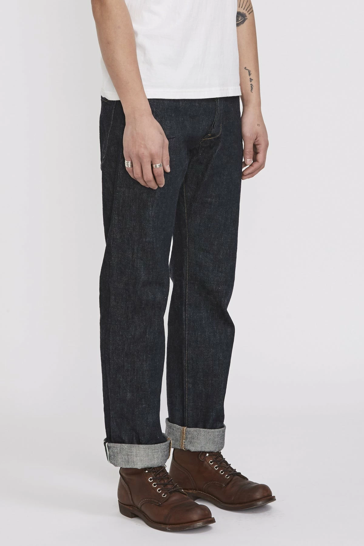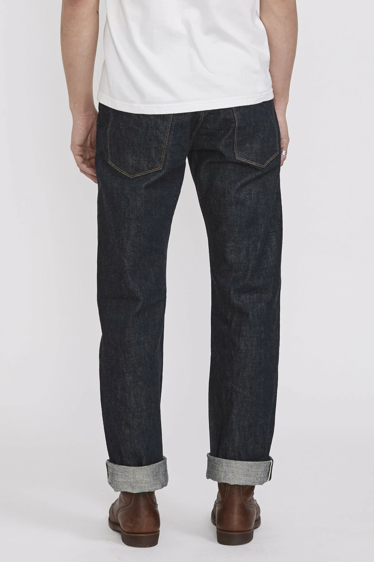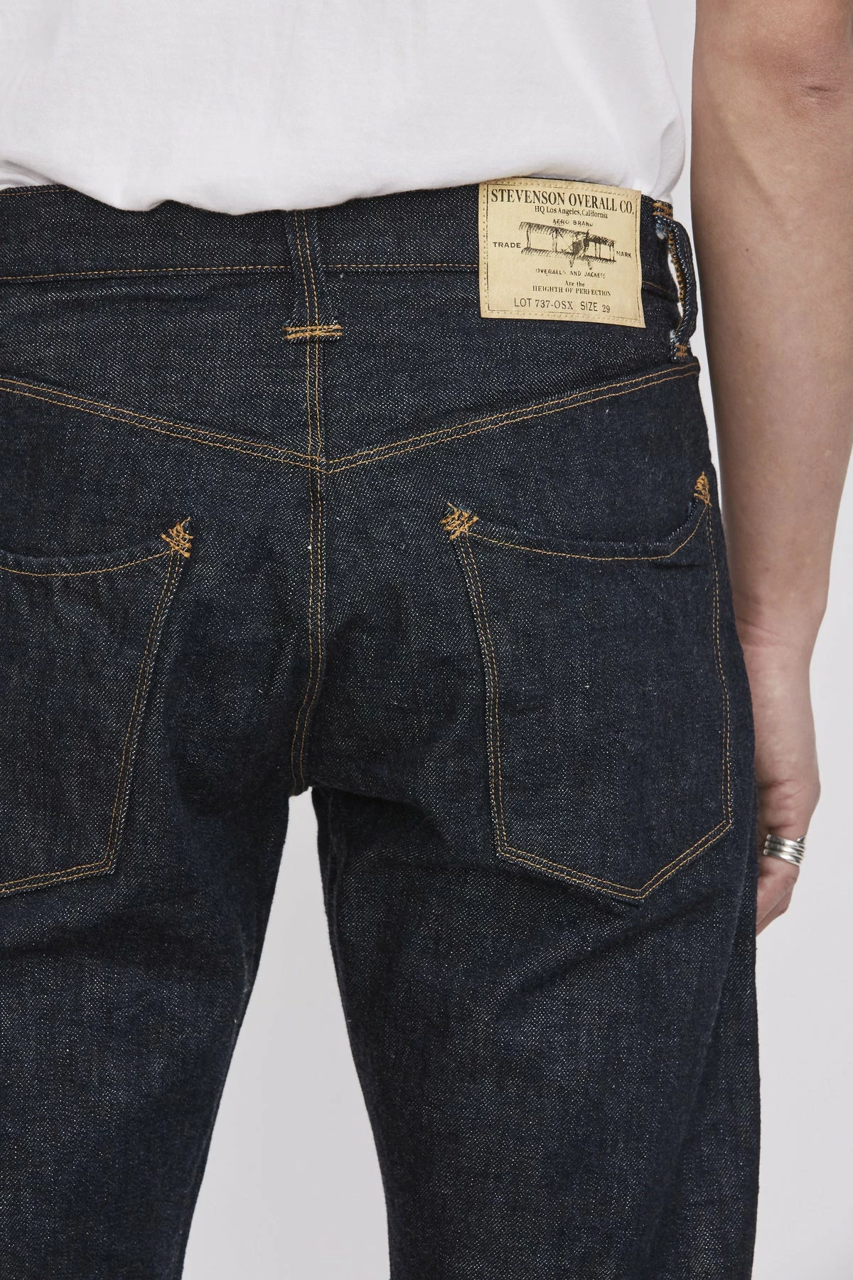 The Ventura 737 is the archetypical modern standard silhouette.. Unmistakably Stevenson Overall Co. with traditional 5 pocket construction, single-needle flat felled seams, arced pockets, curved line designs and a slanted V-shaped belt loop. The Imperial 120 silhouette is a true slim fit. Straight through the waist with a regular rise and tapering gradually to the hem