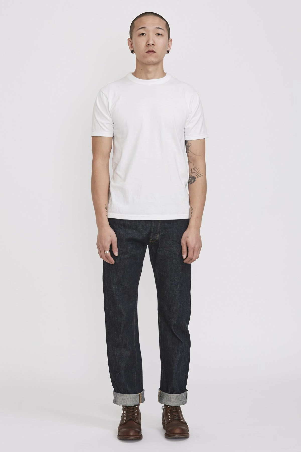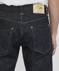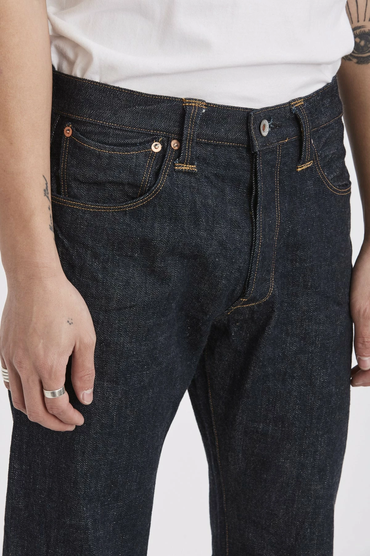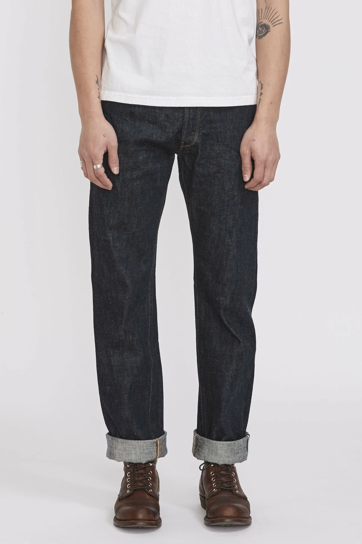 The Ventura 737 is the archetypical modern standard silhouette.. Unmistakably Stevenson Overall Co. with traditional 5 pocket construction, single-needle flat felled seams, arced pockets, curved line designs and a slanted V-shaped belt loop. The Imperial 120 silhouette is a true slim fit. Straight through the waist with a regular rise and tapering gradually to the hem