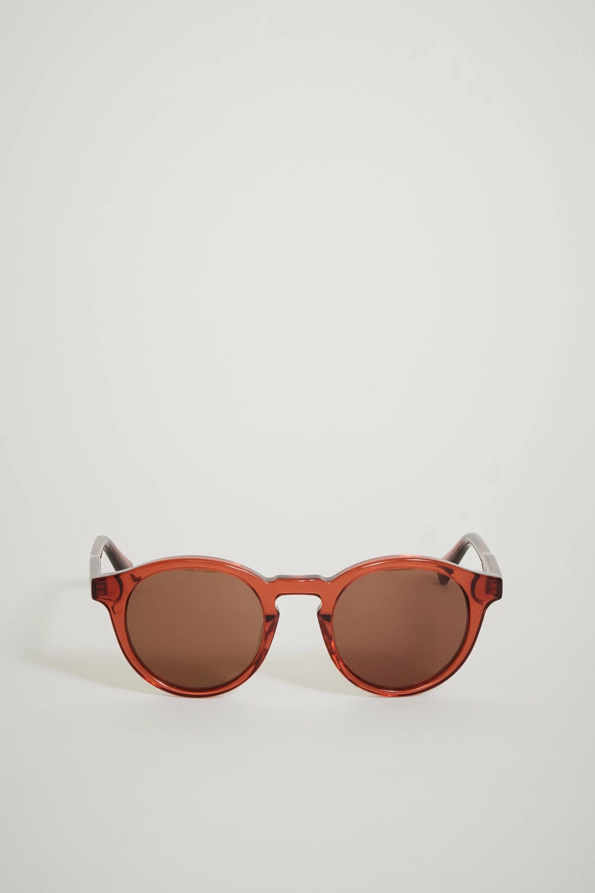 With a vintage inspired biblio frame, the Zinedine Rust from Swedish brand Sun Buddies are handmade of transparent Italian acetate and fitted with brown G15 Carl Zeiss lenses. Simple, classic style.